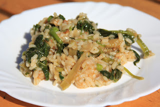 Finalment afegim l'aigua a mesura que l´arròs ho demani,normalment són dues tasses d´aigua per tassa d´arros. La cocció durarà uns 20 minuts i quan estigui el gra quasi a punt, es retira del foc i es deix que reposi.